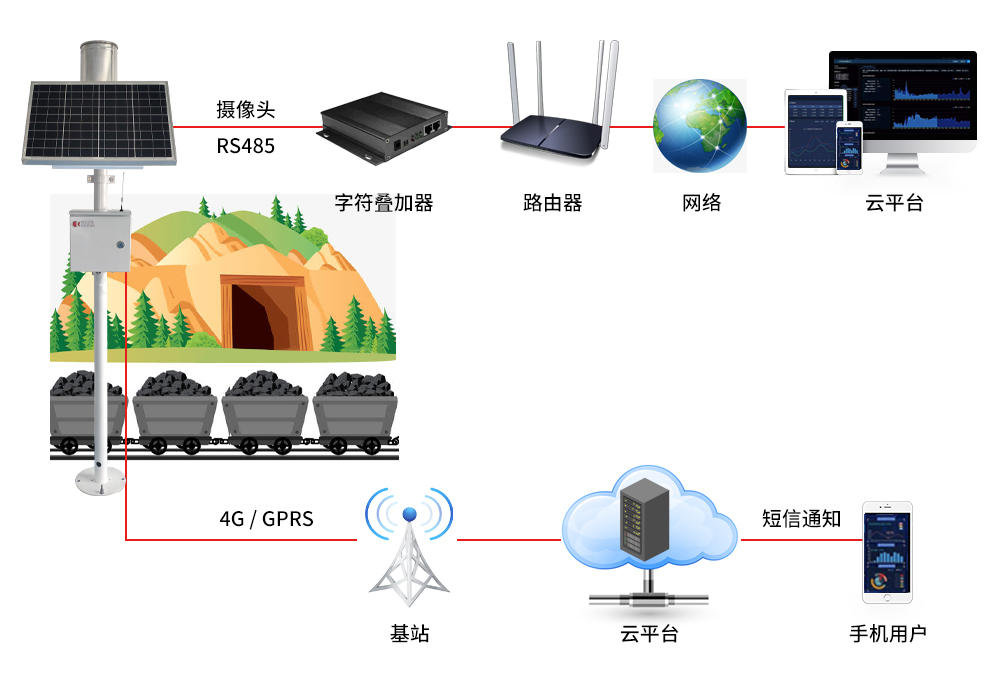 礦山雨量監(jiān)測(cè)系統(tǒng)是我司專(zhuān)門(mén)為礦山雨量監(jiān)測(cè)設(shè)計(jì)的系統(tǒng),該系統(tǒng)以物聯(lián)網(wǎng)為基礎(chǔ),結(jié)合互聯(lián)網(wǎng)、大數(shù)據(jù)、云計(jì)算等技術(shù),集雨量?jī)A角氣象各參數(shù)在線采集、無(wú)線傳輸、遠(yuǎn)程管理、視頻監(jiān)控、超限報(bào)警、歷史數(shù)據(jù)查詢、數(shù)據(jù)分析等功能于一體的礦山雨量監(jiān)測(cè)系統(tǒng)。
