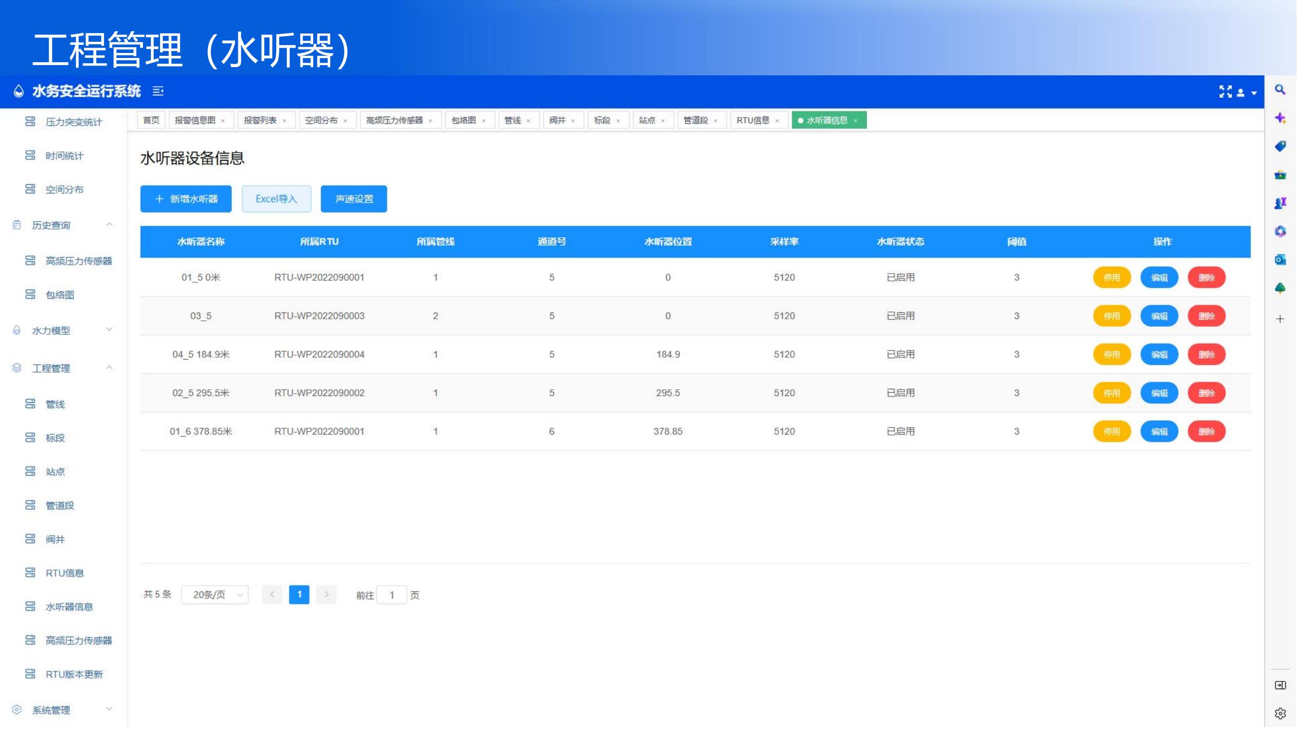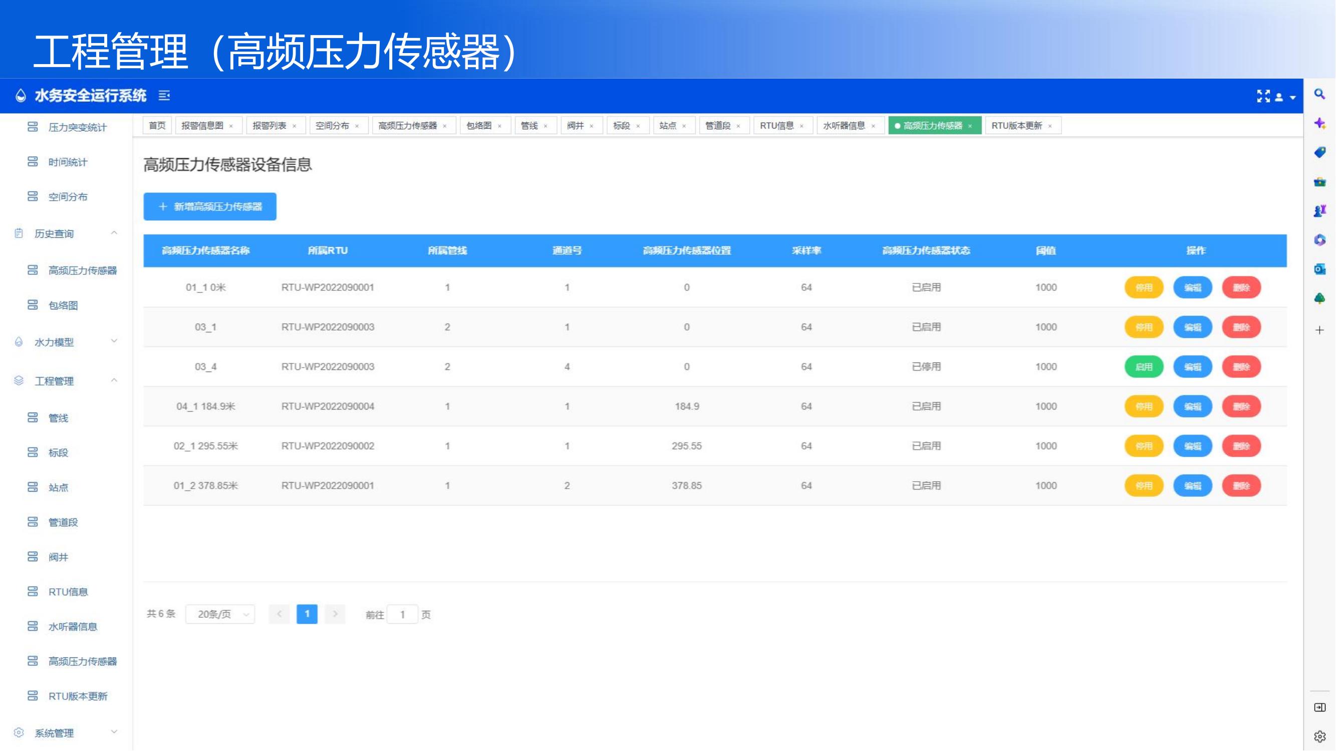 某某工程在管線的排氣閥井設(shè)置xx套傳感器(高頻壓力+水聽器+RTU套件),用于監(jiān)...